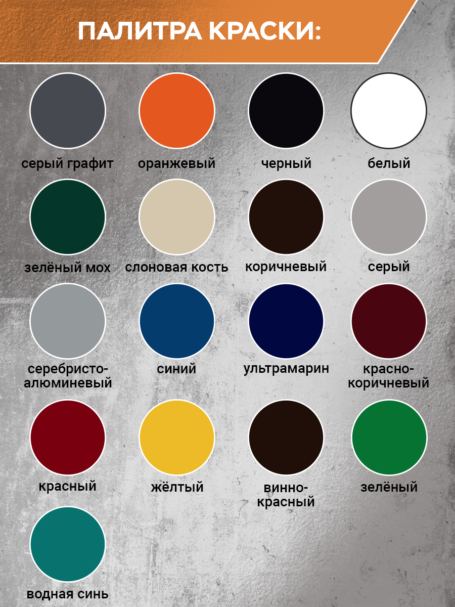| Плюсы: | Укрывистая, быстро сохнет, хорошо защищает от коррозии |