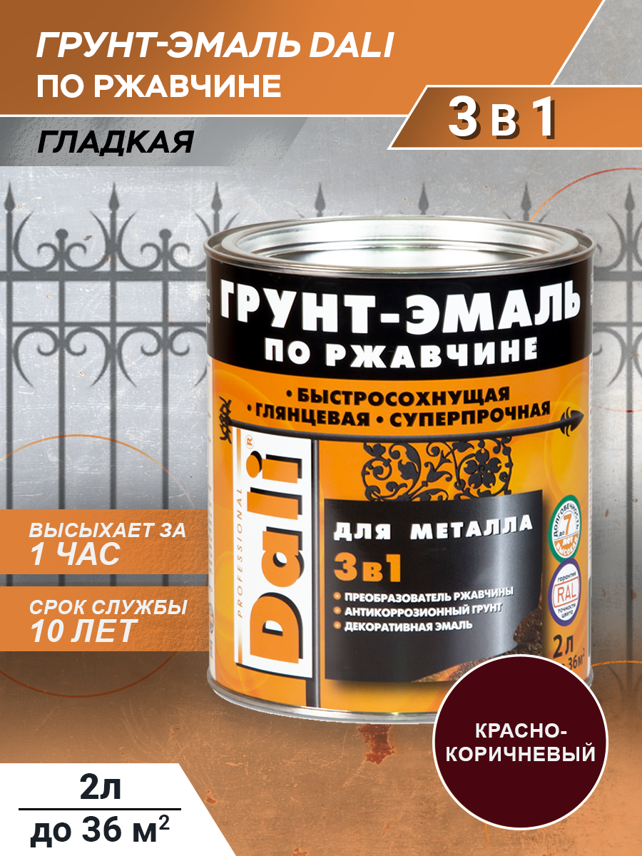 Грунт-эмаль по ржавчине 3 в 1 гладкая Dali 2 л красно-коричневый (RAL 3011)