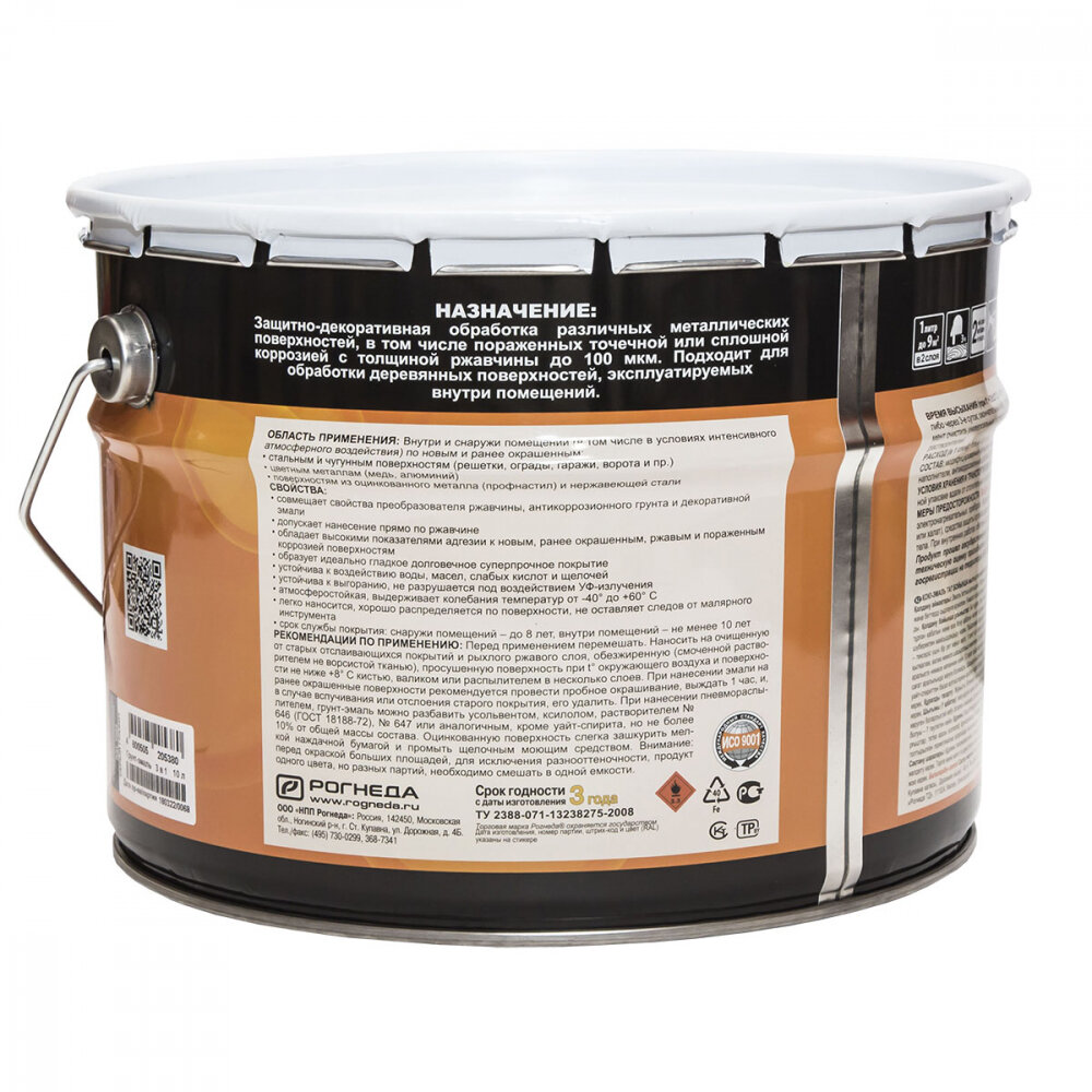 Грунт-эмаль по ржавчине, коричневый, 10 л