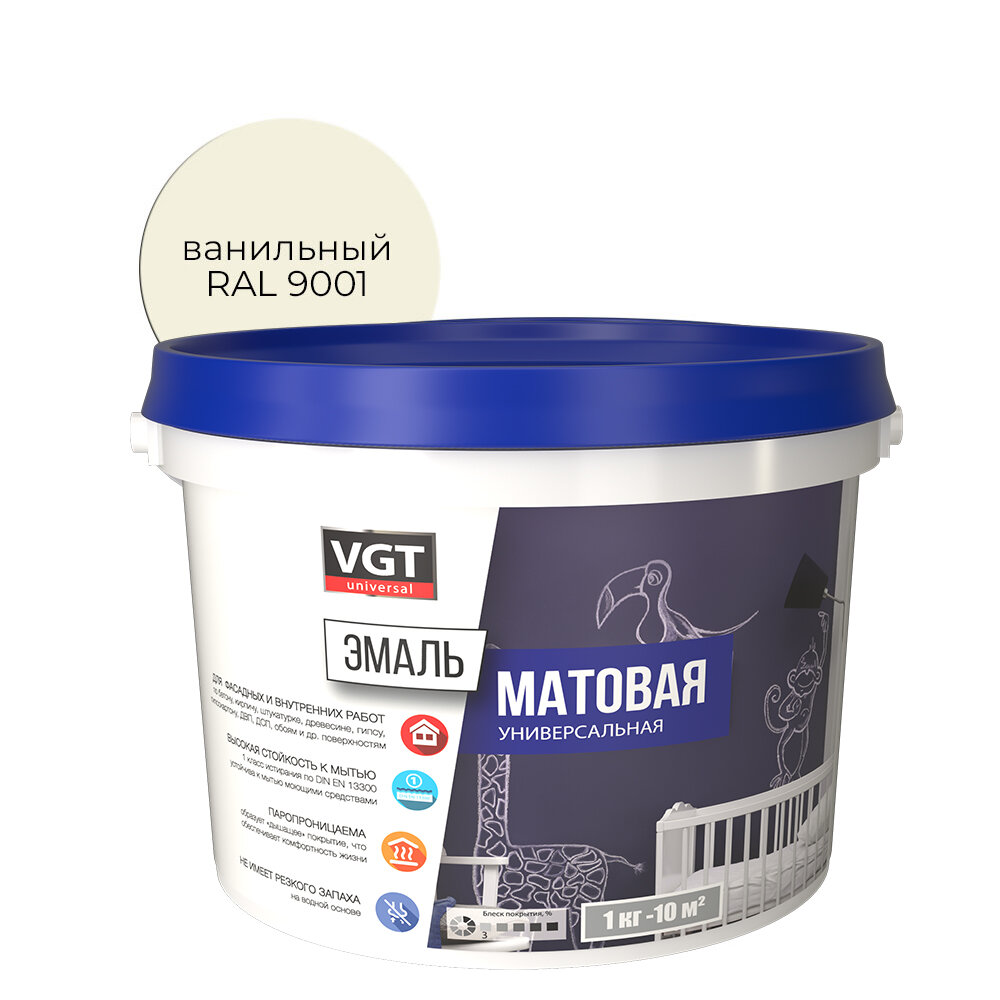 Эмаль универсальная ВД-АК-1179 VGT цветная матовая (1кг) молочный RAL 9010