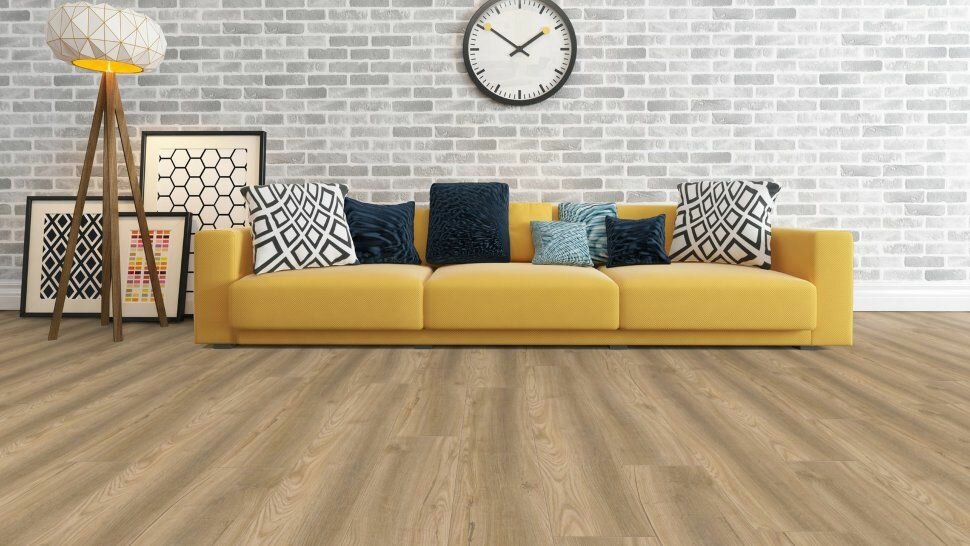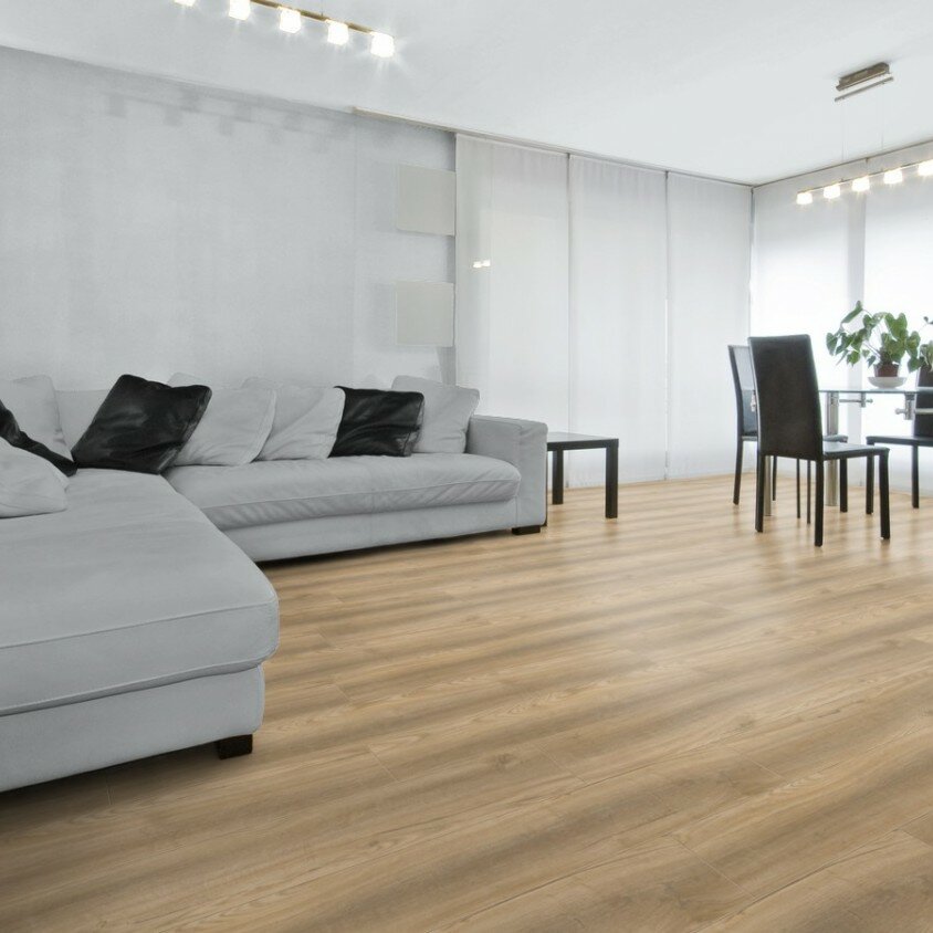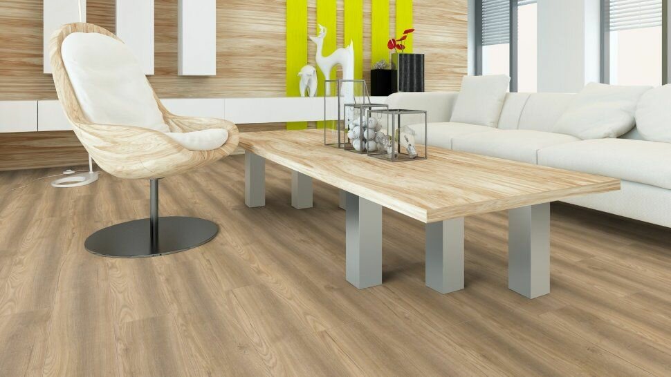 Выбрал вариант Kronotex Aqua Robusto. Интересный чёткий рисунок, что важно. Почитал отзывы, отмечают, что не выцветает со временем. Могу отметить, что он хорошо укладывается. На вид выглядит прочно. Но через месяц пользования могу сказать, что не продавливается под ногами и шкафами. Ногам комфортно ходить по ламинату |