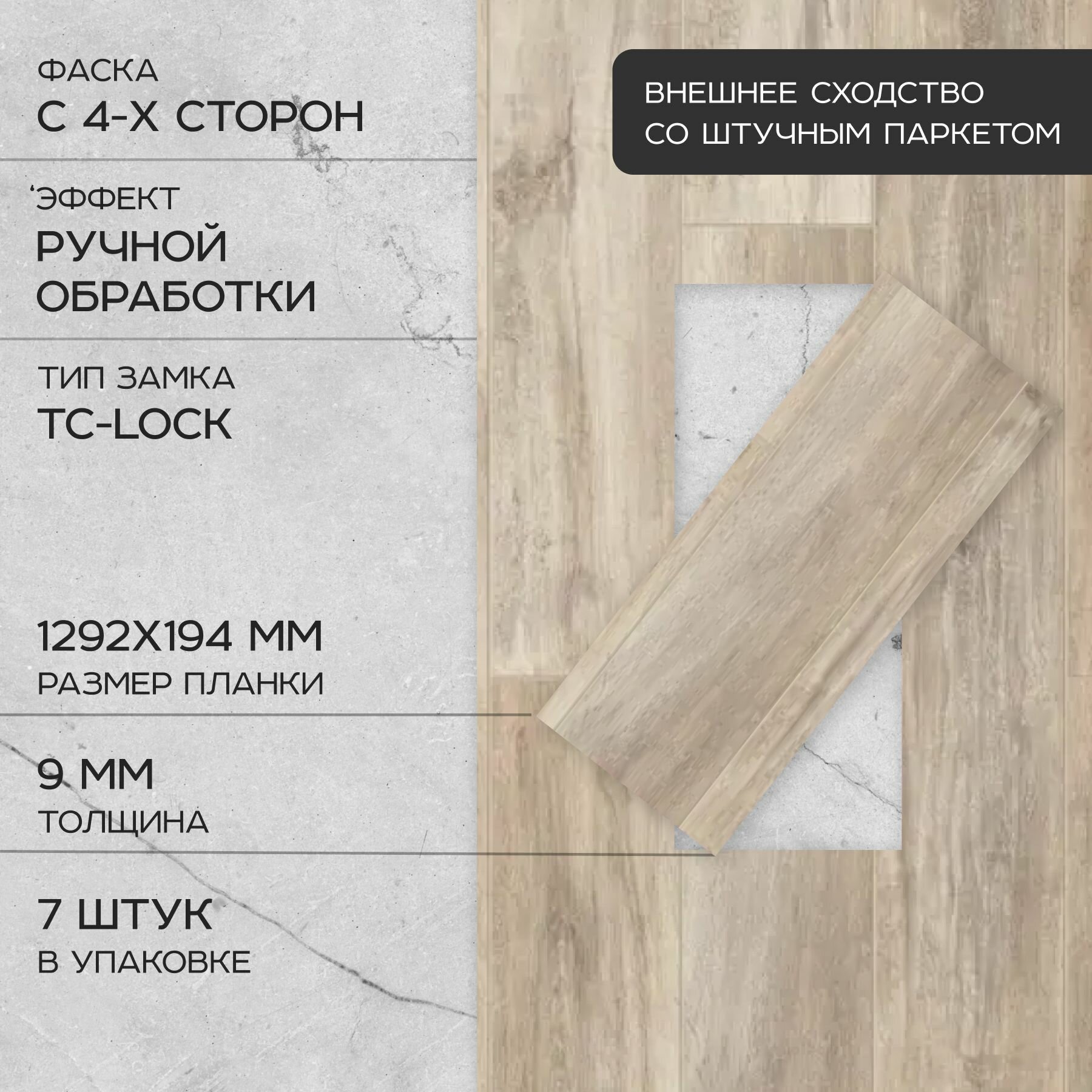 Таркетт Эстетика ламинат 33 класс 9мм Темпера (упак. 1,754 кв.м.) / TARKETT Estetika ламинат 33 класс 1292х194х9мм Tempera (упак. 7шт.=1,754 кв.м.) с