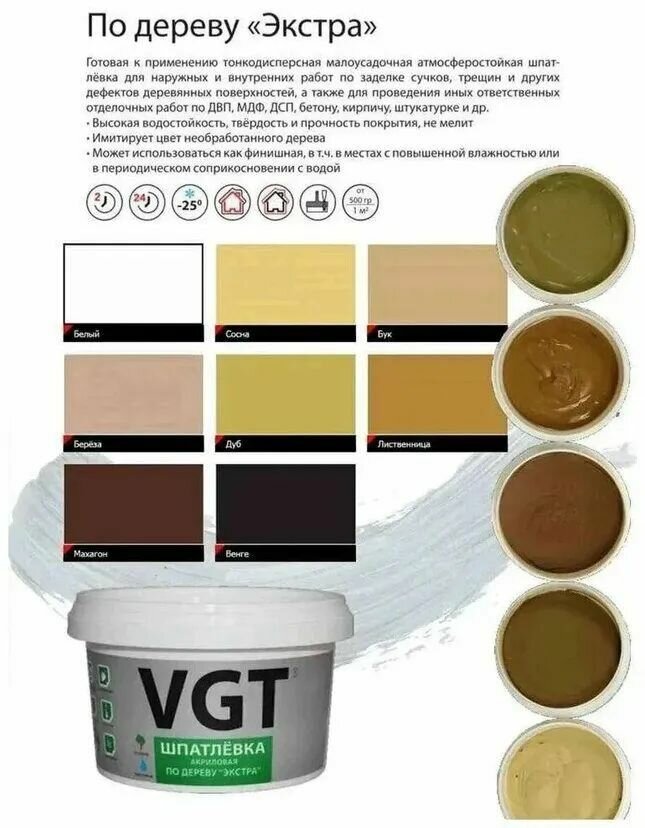 Шпатлевка по Дереву VGT Экстра 1кг Берёза Акриловая, Универсальная / ВГТ Экстра.