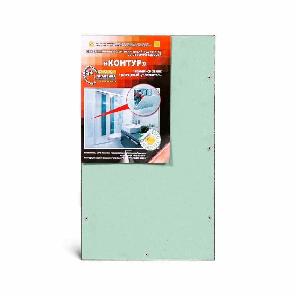 Ревизионный люк Контур 30-20 настенный под плитку ПРАКТИКА, серебристый/зеленый