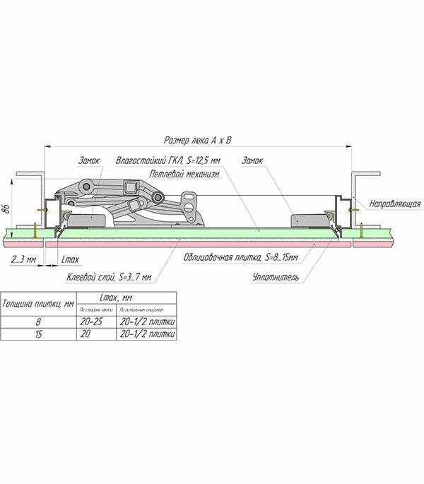 Люк под плитку Хаммер Стил 20/30 (ш/в, размер дверцы 175/275, гл.45)