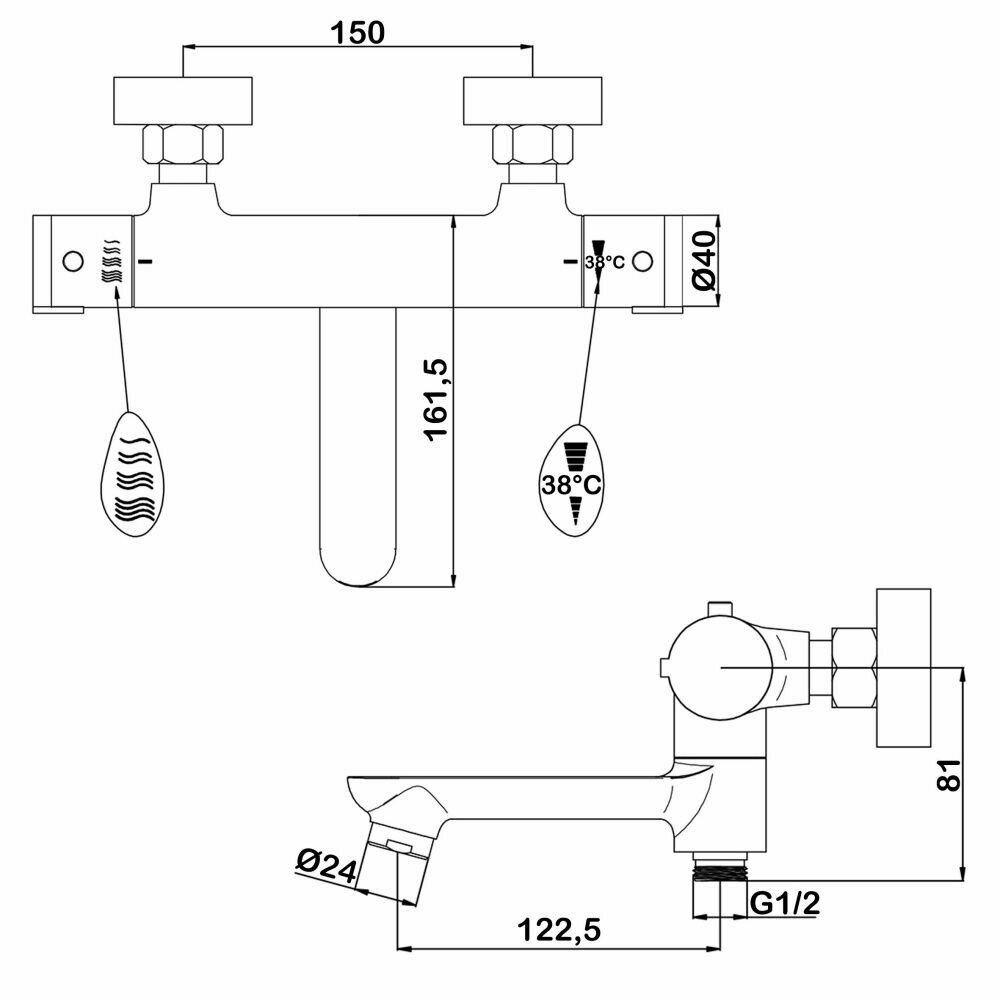 Термостат настенный для ванны и душа Swedbe Mercury с поворотным изливом 9045