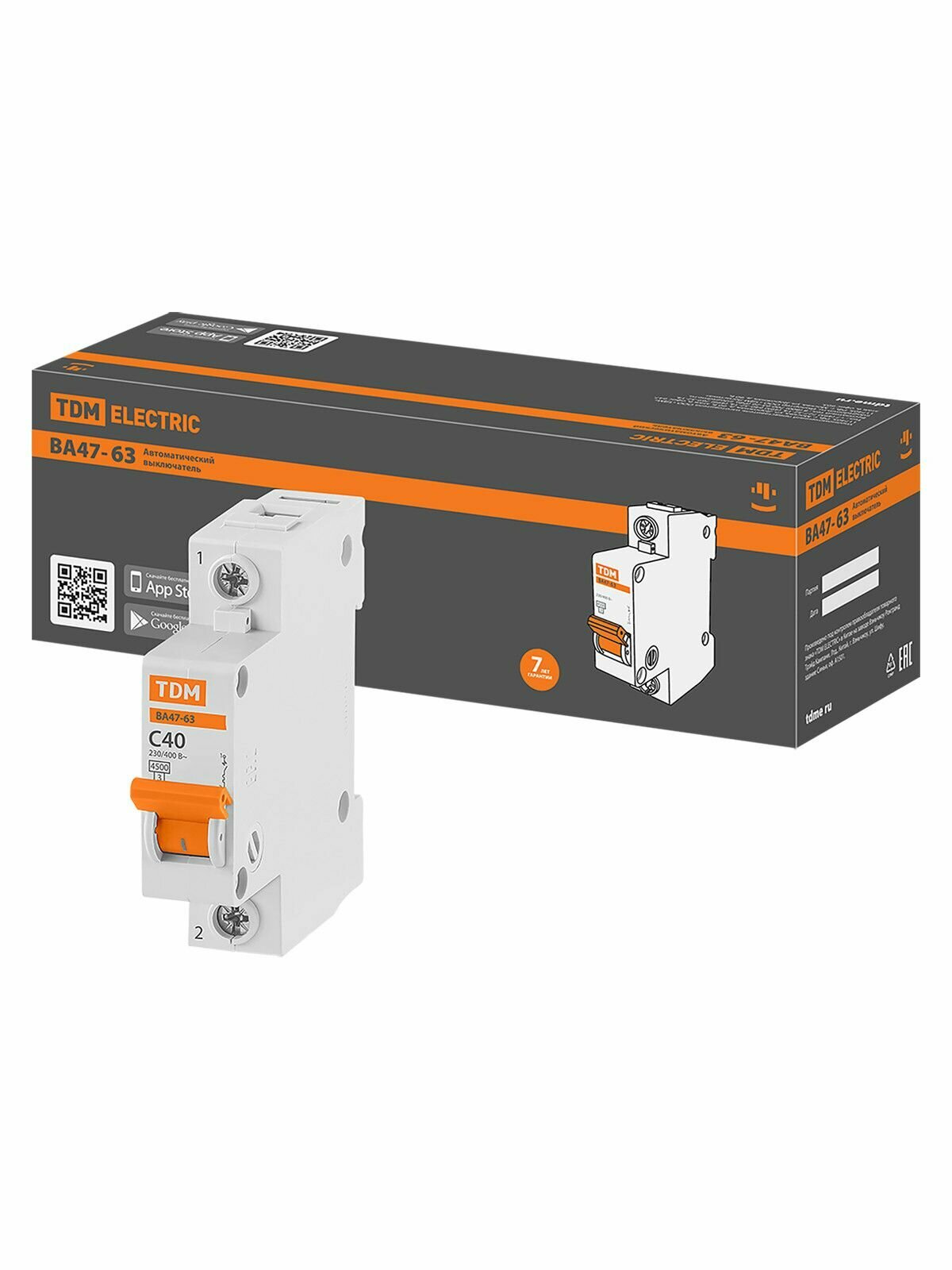 Автоматический выключатель TDM Electric ВА47-63 1P C40 А 4.5 кА SQ0218-0007