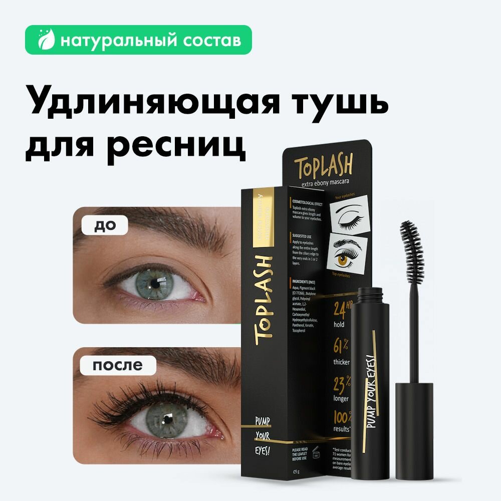 Тушь для ресниц Toplash 6 мл. Extra Ebony Mascara экстра черная тушь с кератином и витамином Е интересное: