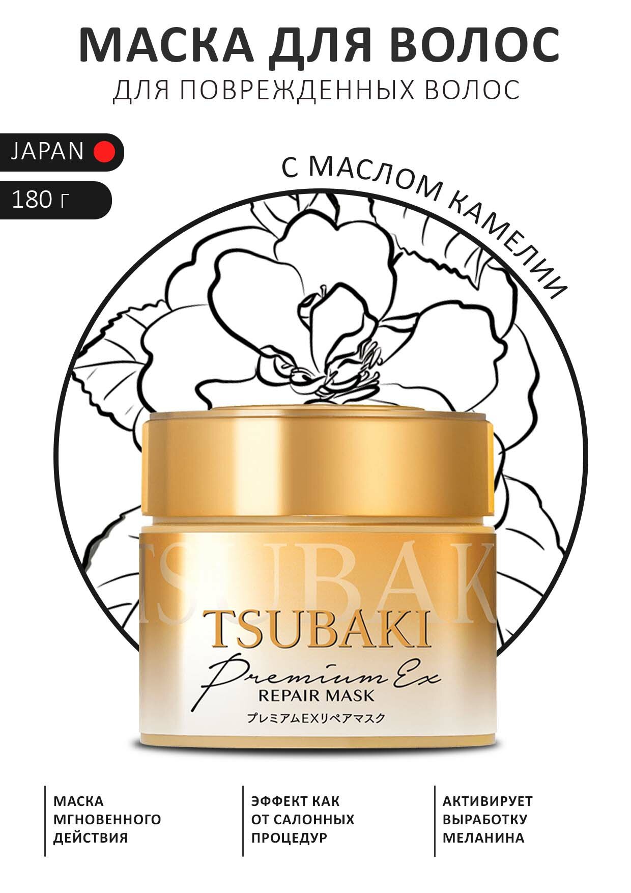 SHISEIDO Восстанавливающая экспресс-маска Tsubaki Premium Repair Hair Mask для поврежденных волос, с маслом камелии, 180г.
