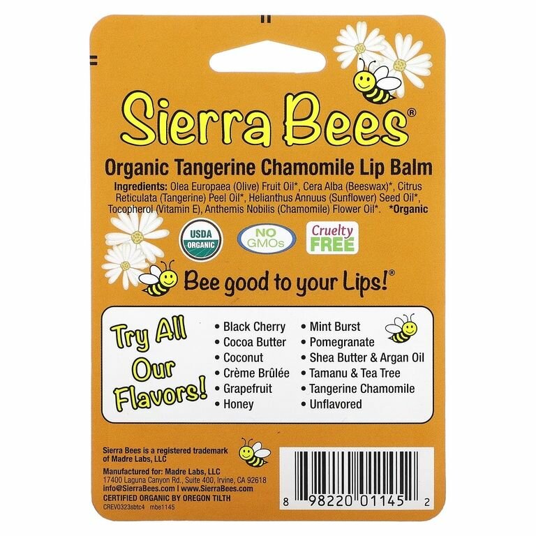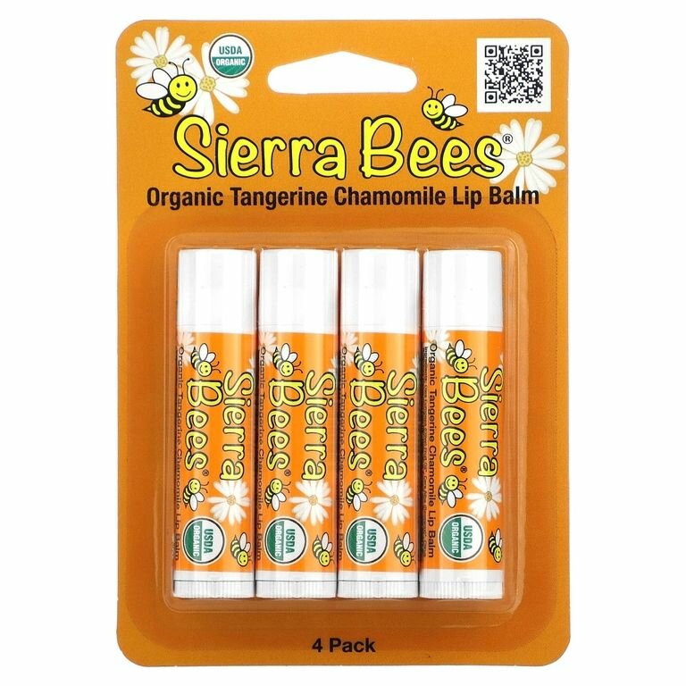 Sierra Bees, набор органических бальзамов для губ, мандарин и ромашка, 4 штуки интересное: