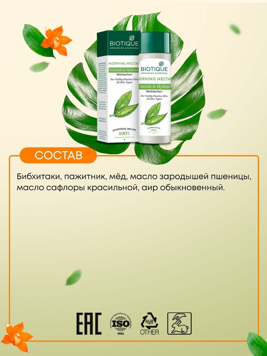 СохранитьЛосьон для лица и тела увлажняющий и питательный Morning Nectar Nourish & Hydrate Moisturizer Biotique (Биотик),120мл интересное: