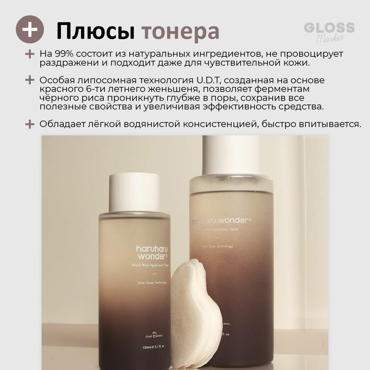 Купить HaruHaru Wonder Увлажняющий тонер с гиалуроновой кислотой и черным рисом Wonder Black Rice Hyaluronic Toner 300 мл