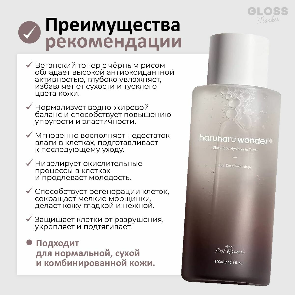 СохранитьHaruHaru Wonder Увлажняющий тонер с гиалуроновой кислотой и черным рисом Wonder Black Rice Hyaluronic Toner 300 мл интересное: