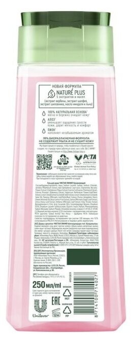 Чистая Линия гель для душа увлажняющий на 100% натуральной основе, пион и алоэ, 250 мл, 289 г