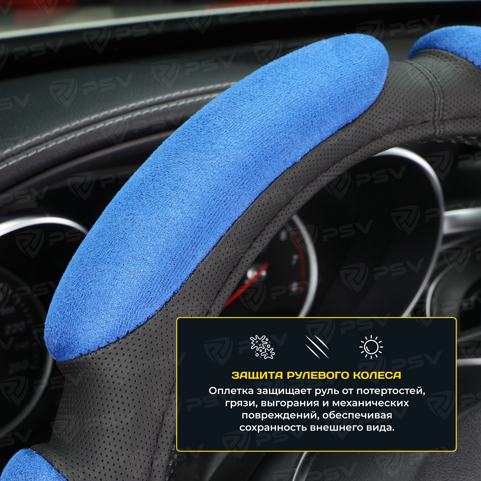 СохранитьОплетка на руль PSV RACE SUPER (Черно-Синий) M, экокожа + алькантара интересное: