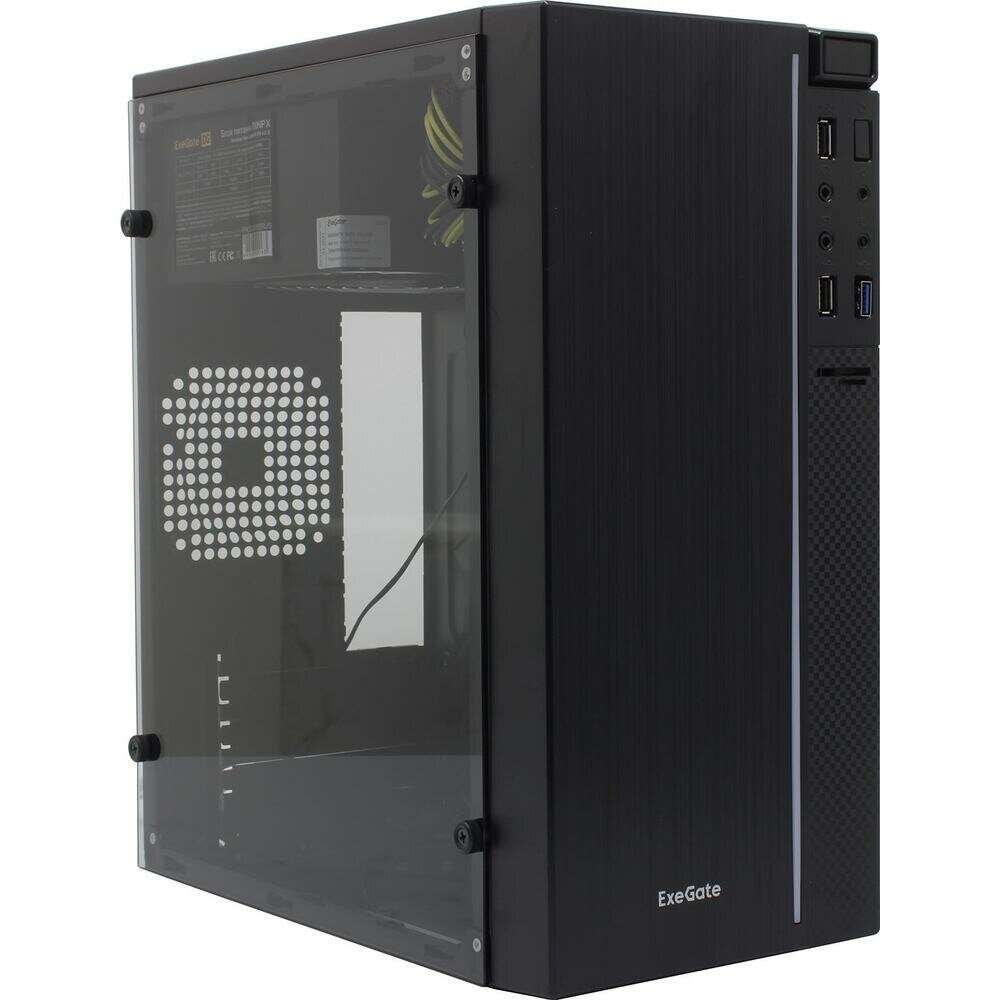 Корпус Minitower ExeGate mEVO-9301-NPX600 (mATX, БП 600NPX с вент. 12см, с окном, 2*USB+1*USB3.0, HD аудио, черный, с RGB подсветкой) EX283752RUS