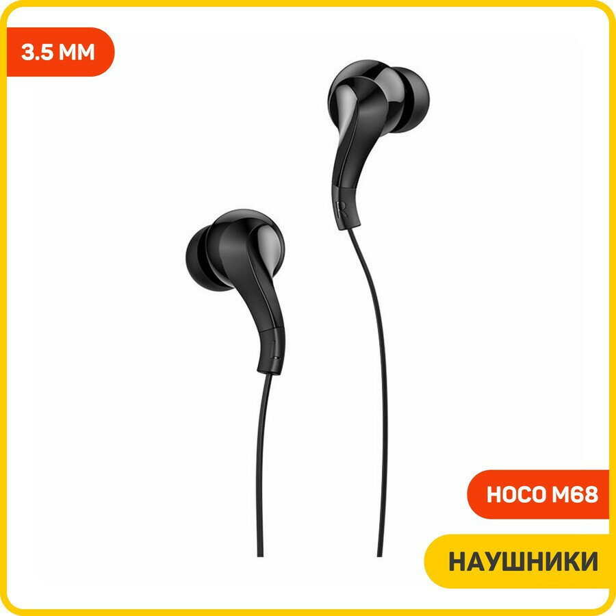 Наушники внутриканальные HOCO M68, Easy, внутриканальные, микрофон, кнопка ответа, кабель 1.2м, цвет: чёрный