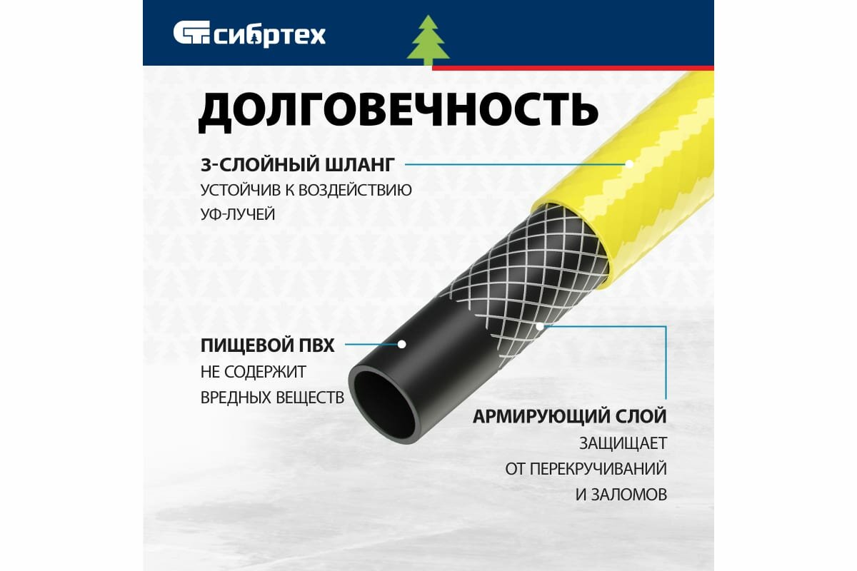Шланг поливочный армированный дачный Сибртех ПВХ, 1/2", 50 м 673546