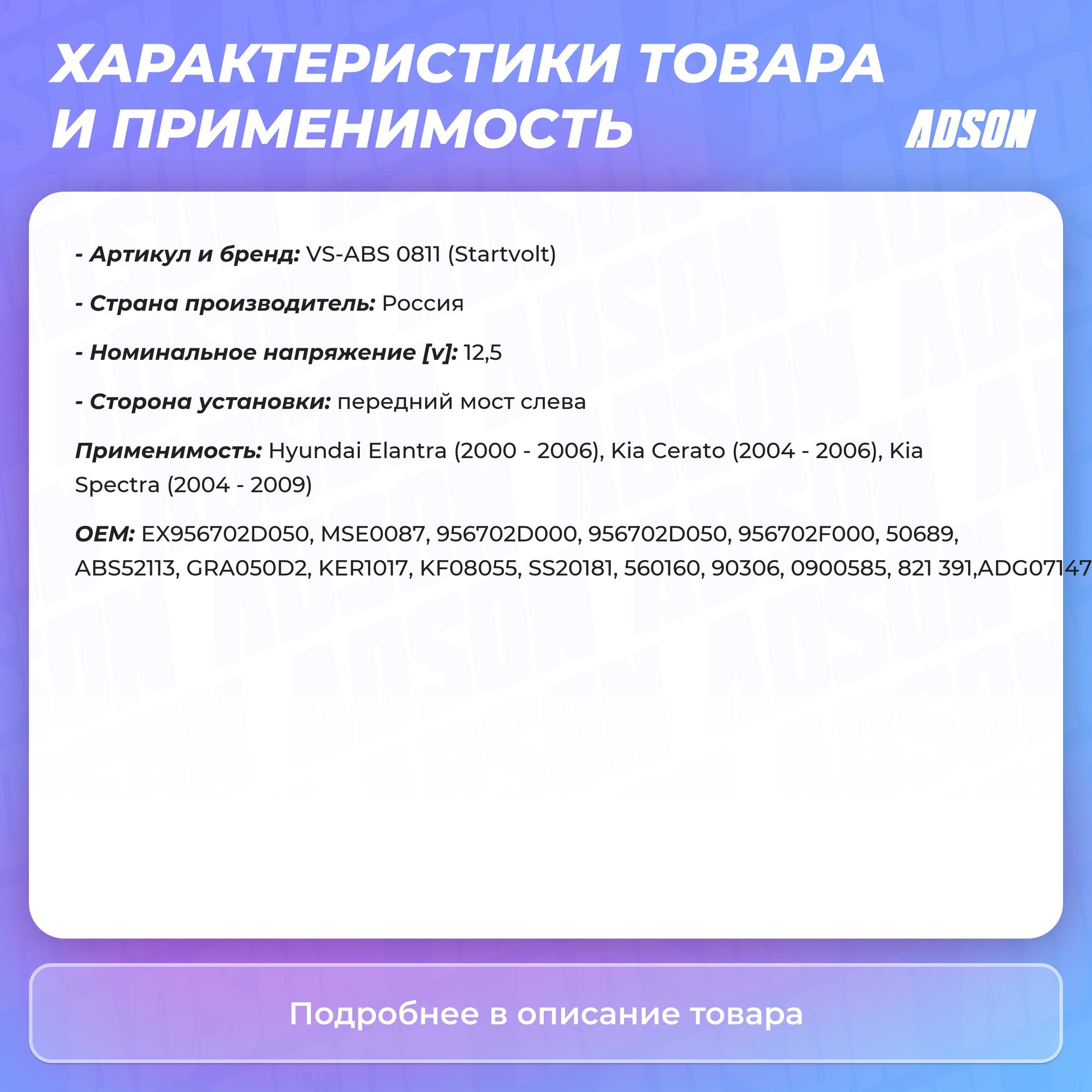 Датчирєрё Abs STARTVOLT арт. VSABS0811