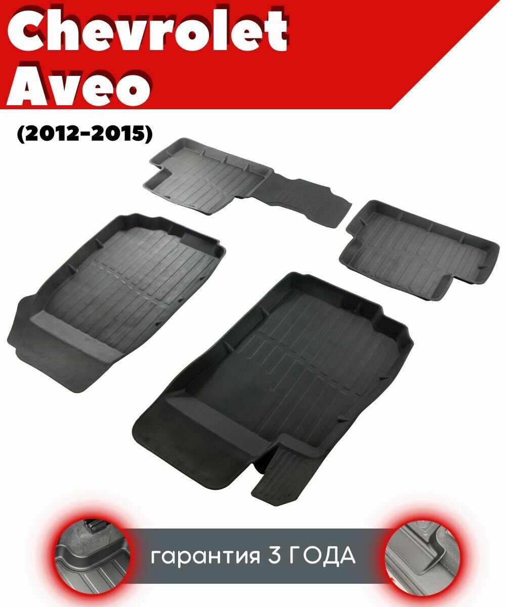 Коврики резиновые в салон 3d premium chevrolet aveo / шевроле авео srtk sd/hb (2012-2015)