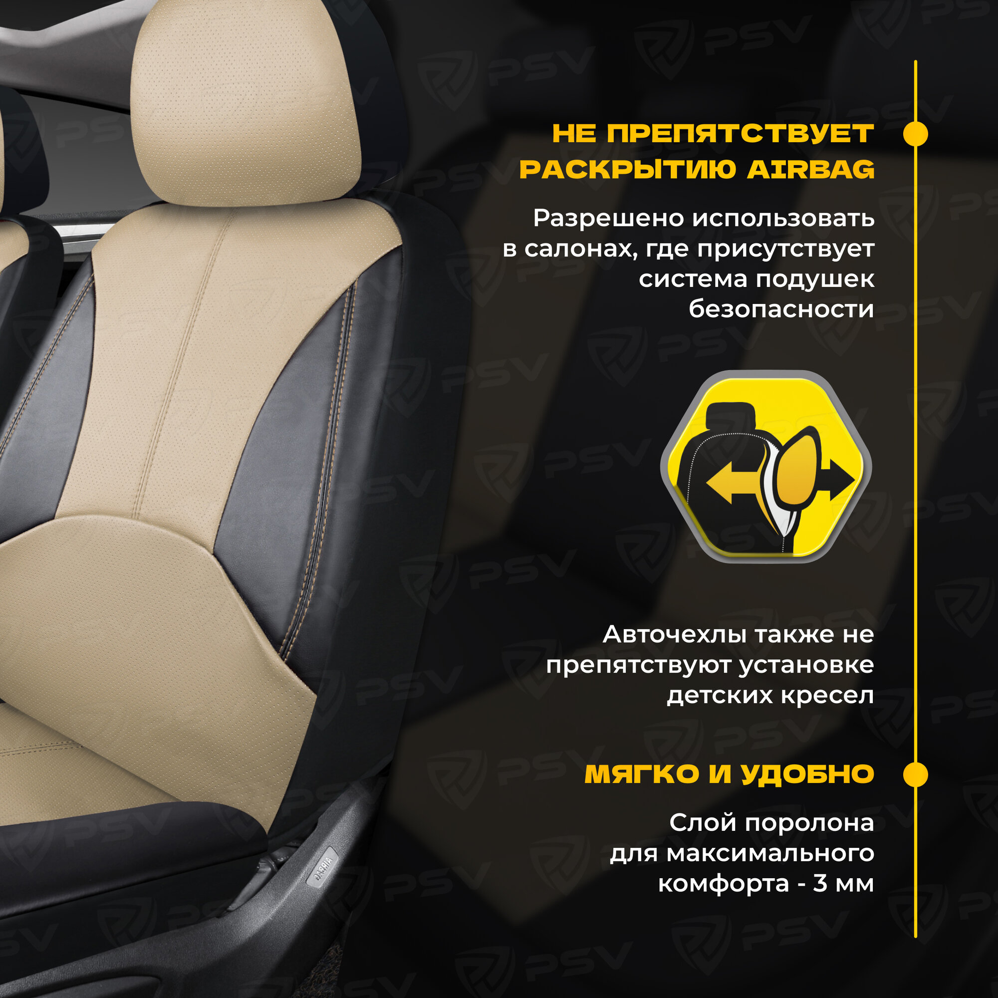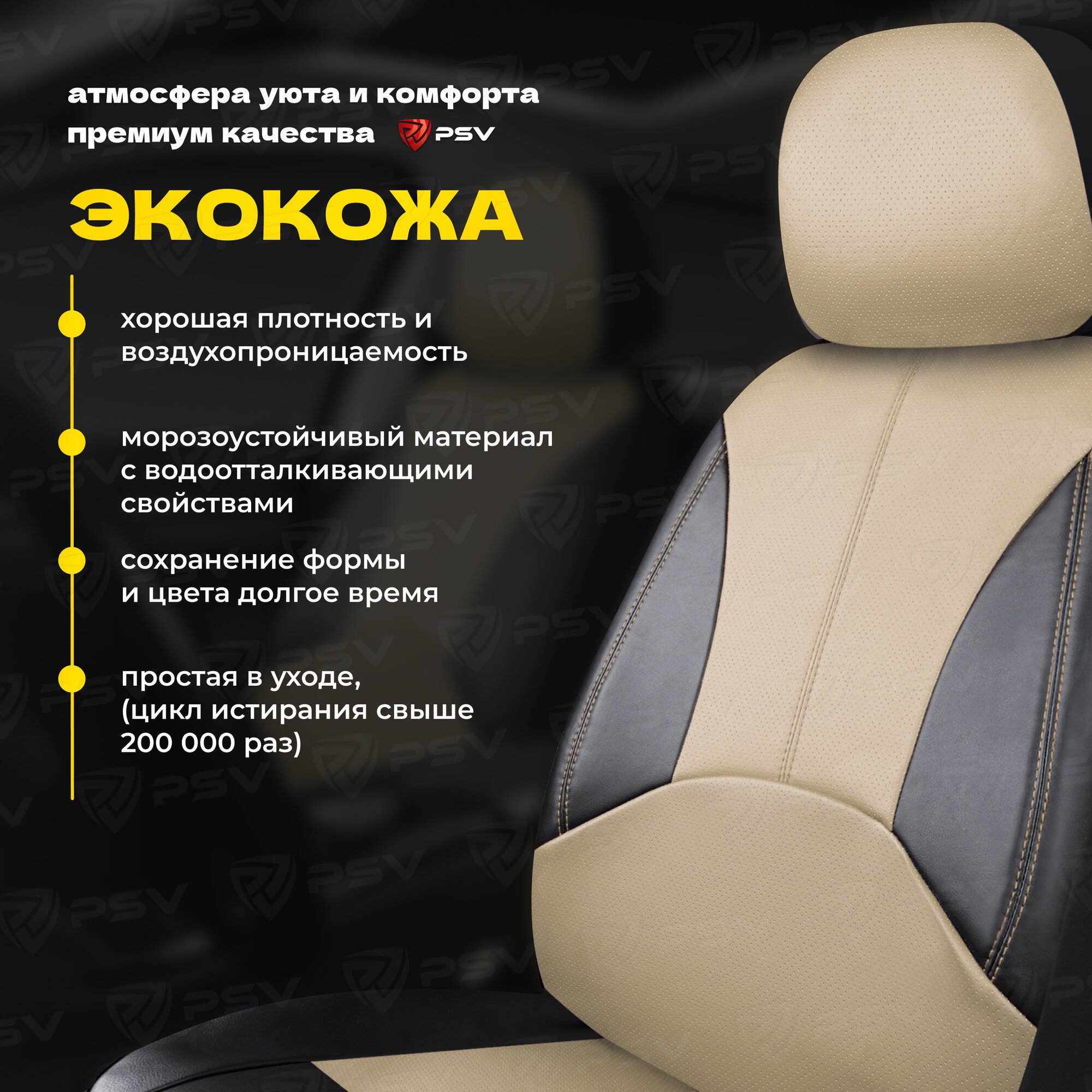Чехлы для автомобильных сидений PSV Imperial Next, экокожа, универсальные, защитные, комплект на весь салон