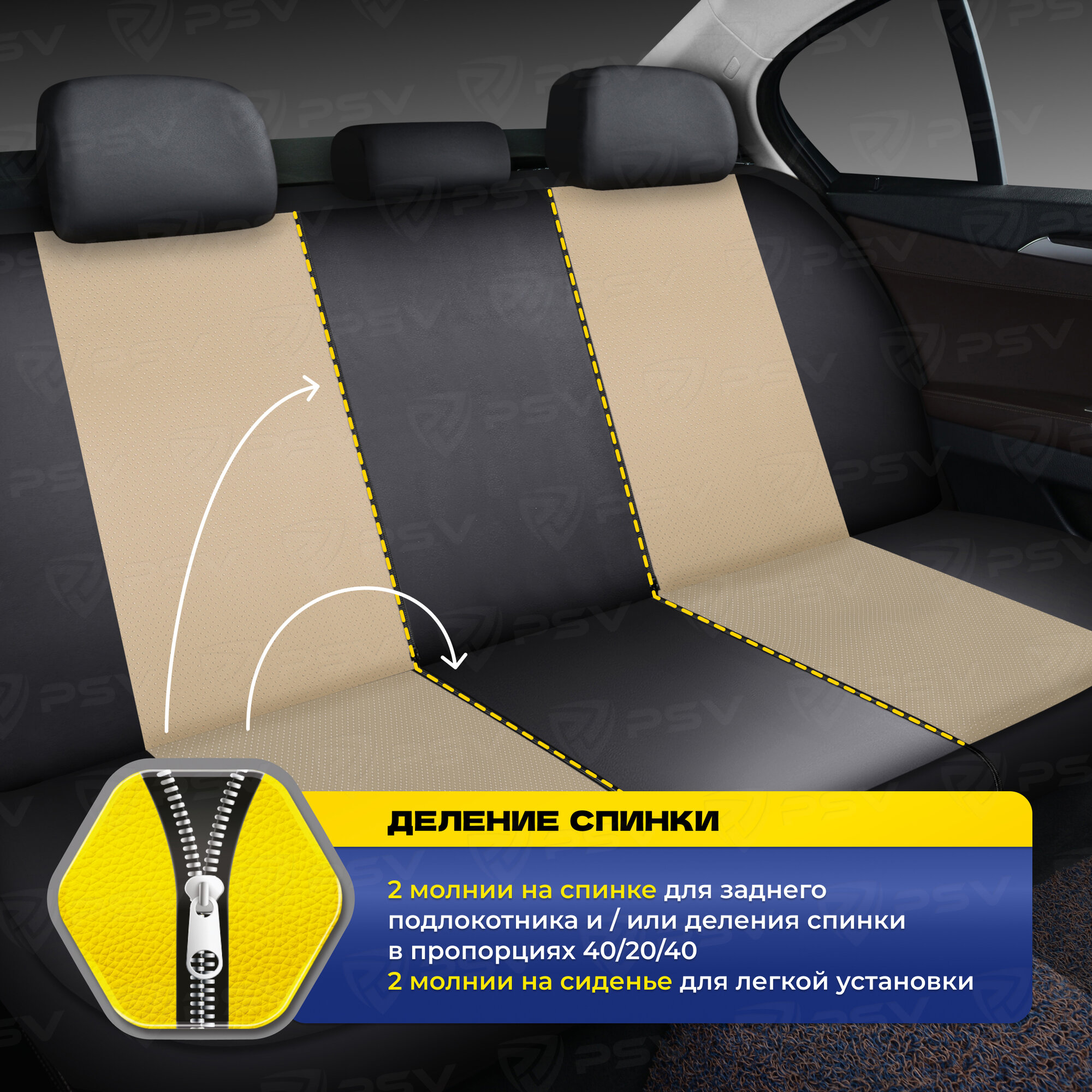 Чехлы на весь салон PSV Imperial Next (Черный-Бежевый), экокожа