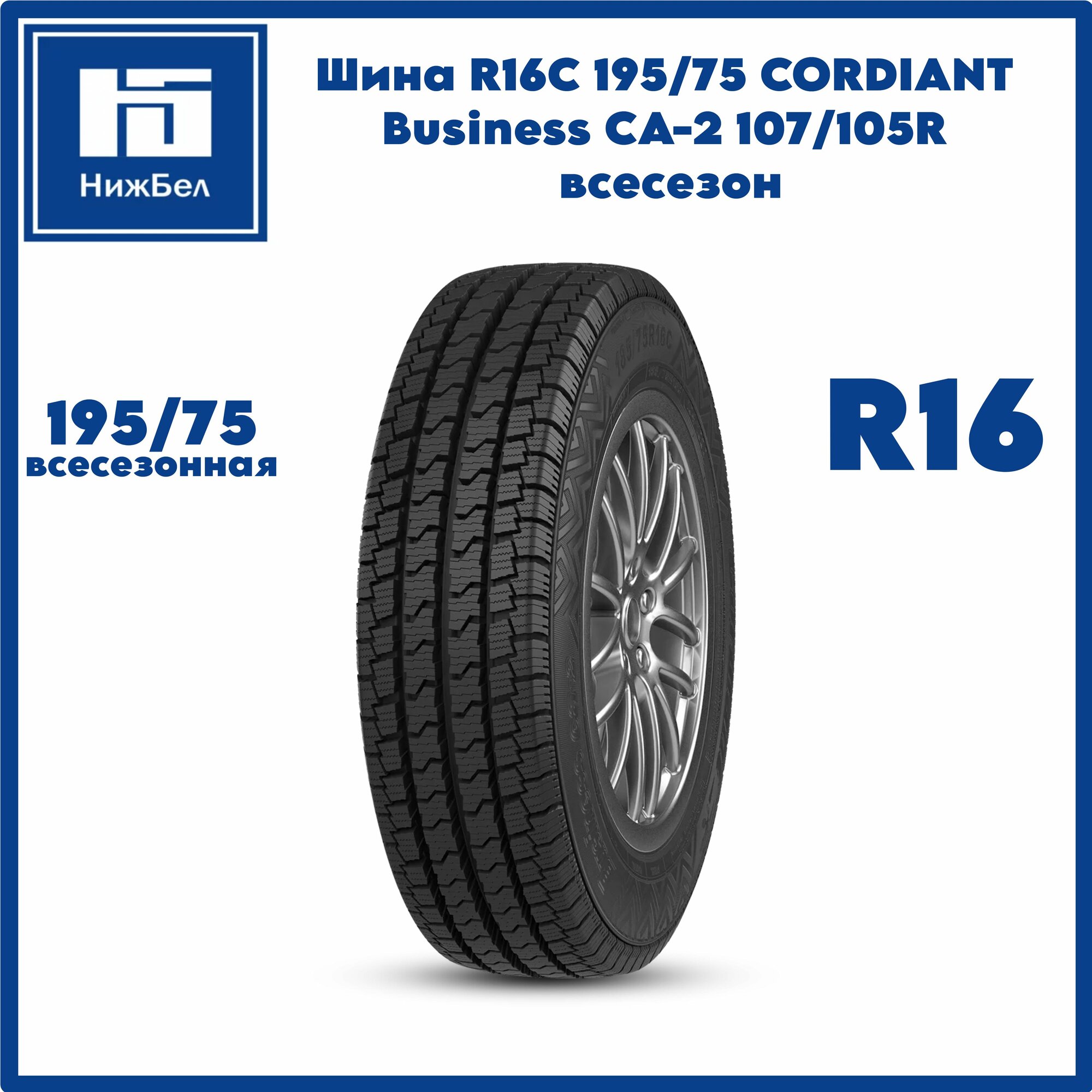 Cordiant Business CA2 Всесезонные Нешипованные 185/75 R16 104Q/102Q Легкогрузовая [TL, LT]