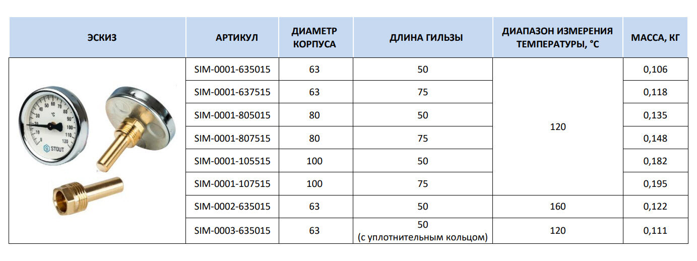 Термометр биметаллический 80 мм 120° STOUT с погружной гильзой 75 мм интересное: