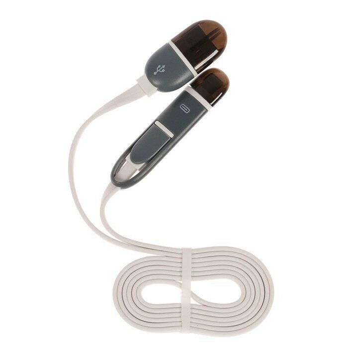 Кабель 2 в 1 LuazON, microUSB/Lightning - USB, 1 А, 0.9 м, плоский, белый, Luazon Home