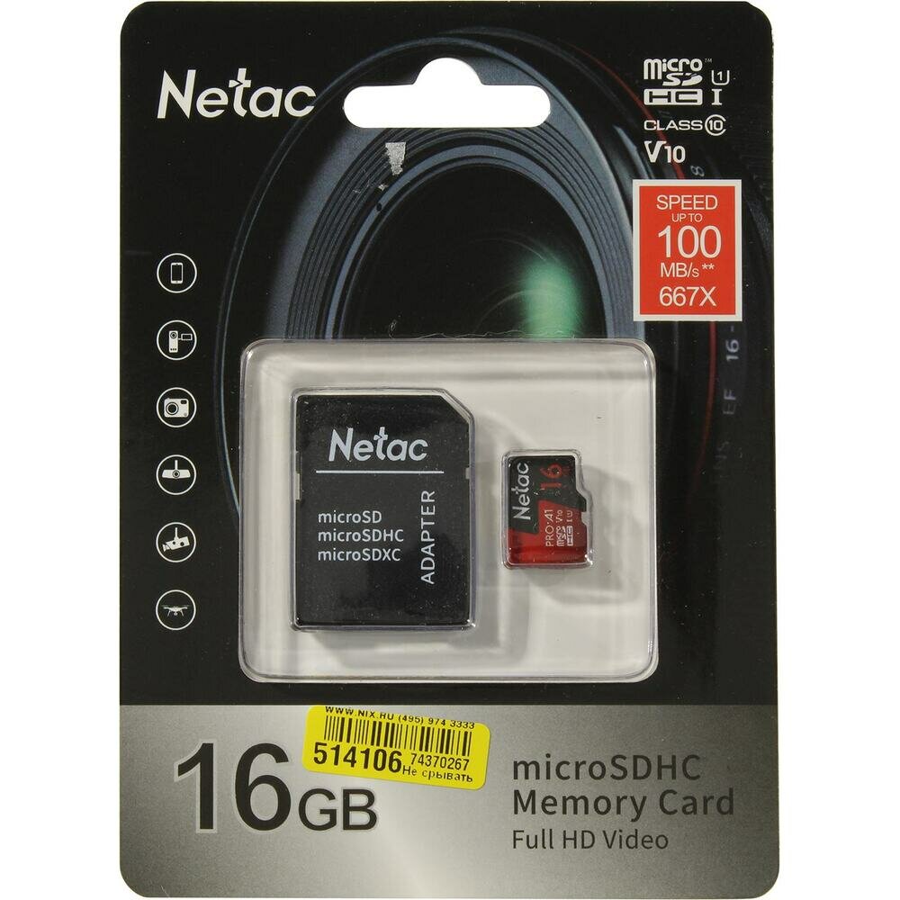 Карта памяти Netac microSD 16 ГБ P500 Class 10 Extreme Pro