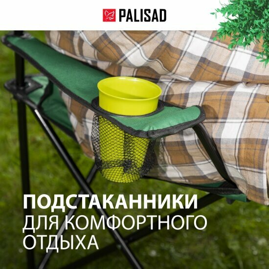 Складной стул с подлокотниками и подстаканникам, зеленый, 81х51х86 см, Palisad Camping