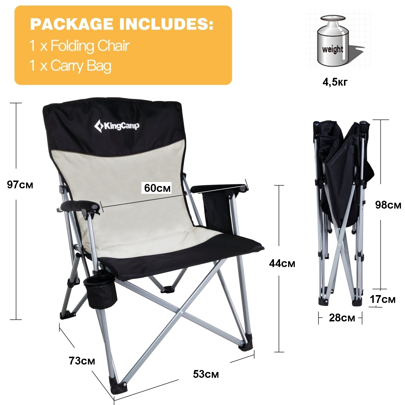 Кресло туристическое раскладное со спинкой KingCamp KC1914 Hard Arm Chair интересное: