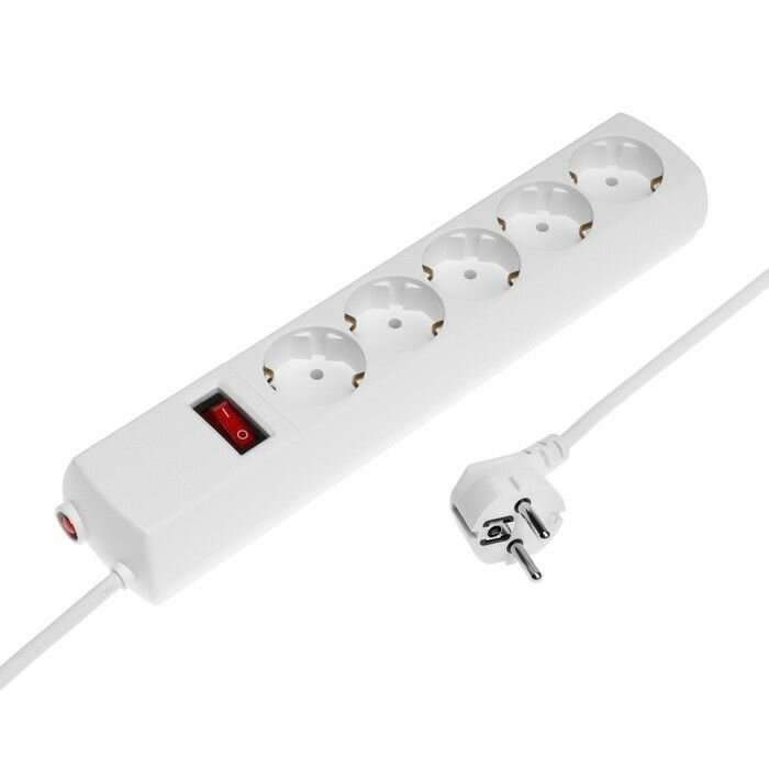 Сетевой фильтр Luazon Lighting, 5 розеток, 1.8 м, 2200 Вт, 3 х 0.75 мм2, 10 А, 220 В, черный