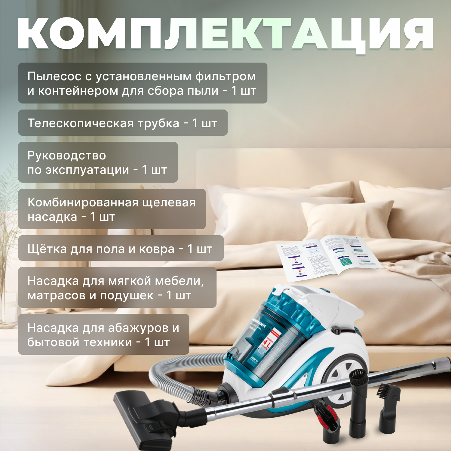 Пылесос бытовой NORMANN AVC-311 (2400 Вт, Мультициклон, Контейнер 4,0 л, Радиус действия 8 м)