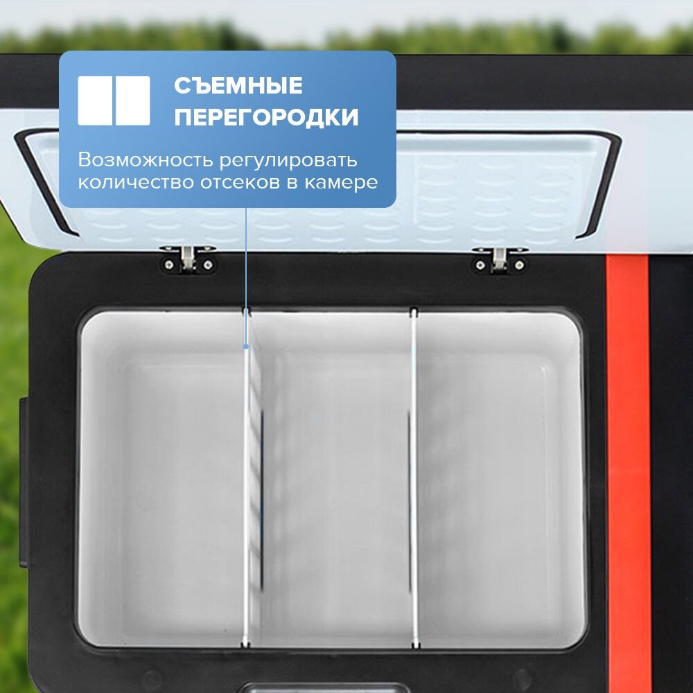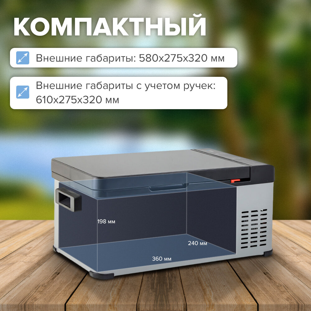 Быстро охлаждает. Выглядит современно. Отлично помещается в наш крошечный багажник. Есть память настроек и сенсорная панель. Настраивать температуру можно в широком диапазоне. |