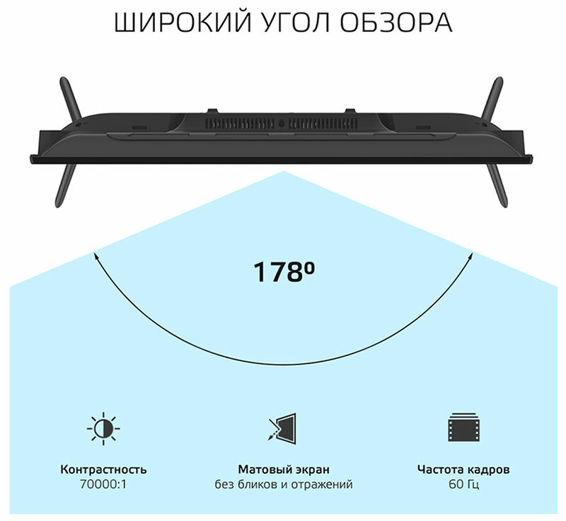 | Отзыв: | Брали эту модель телевизора в спальню. По цене, размеру, очень подходит для такого места. Имеет четкое изображение, цвета насыщенные и яркие. Со Smart TV никогда не возникает проблем, что посмотреть, можно открыть ютуб, кинопоиск. Удобный пульт. Звук хорошего качества. Эту модель также рекомендую для дачи. |