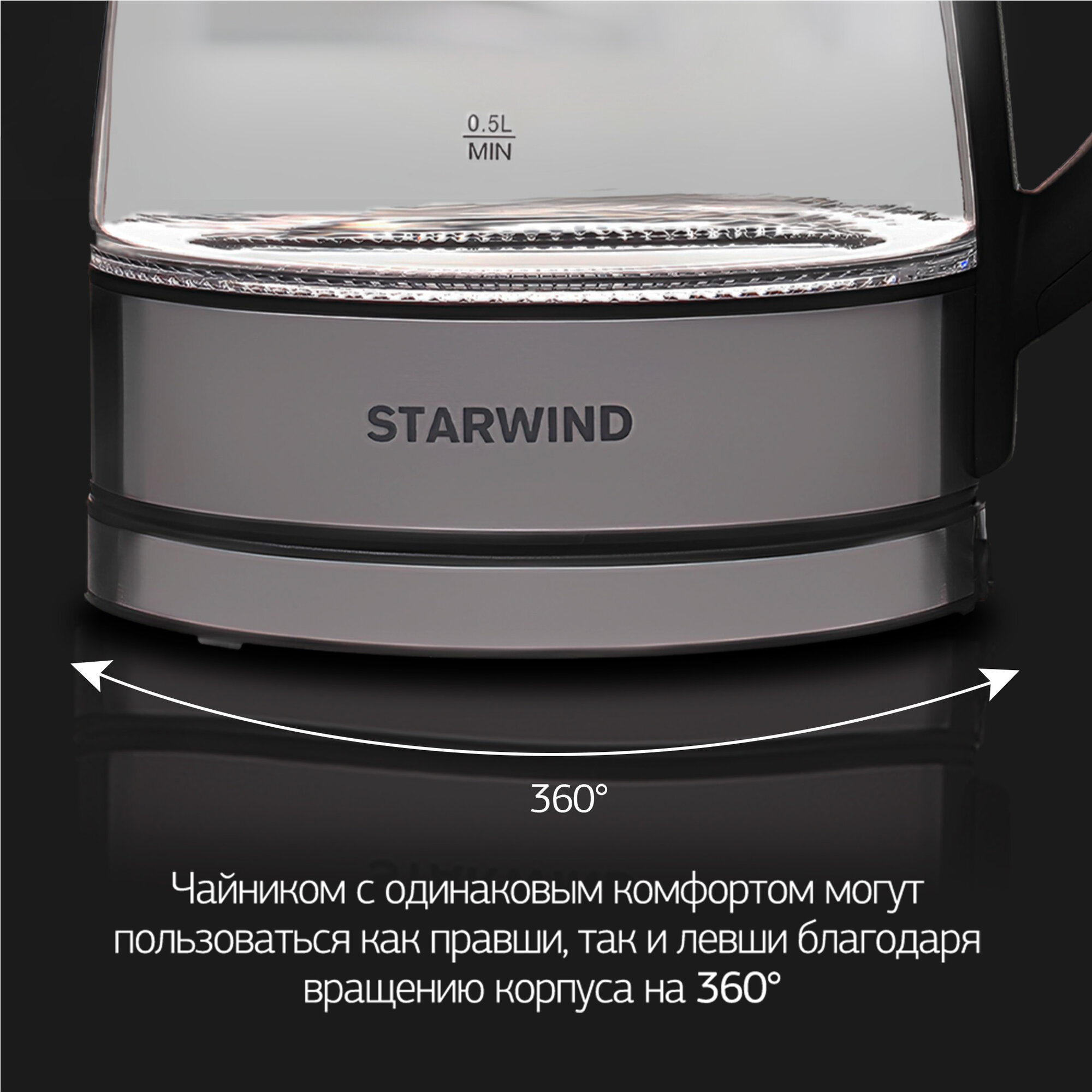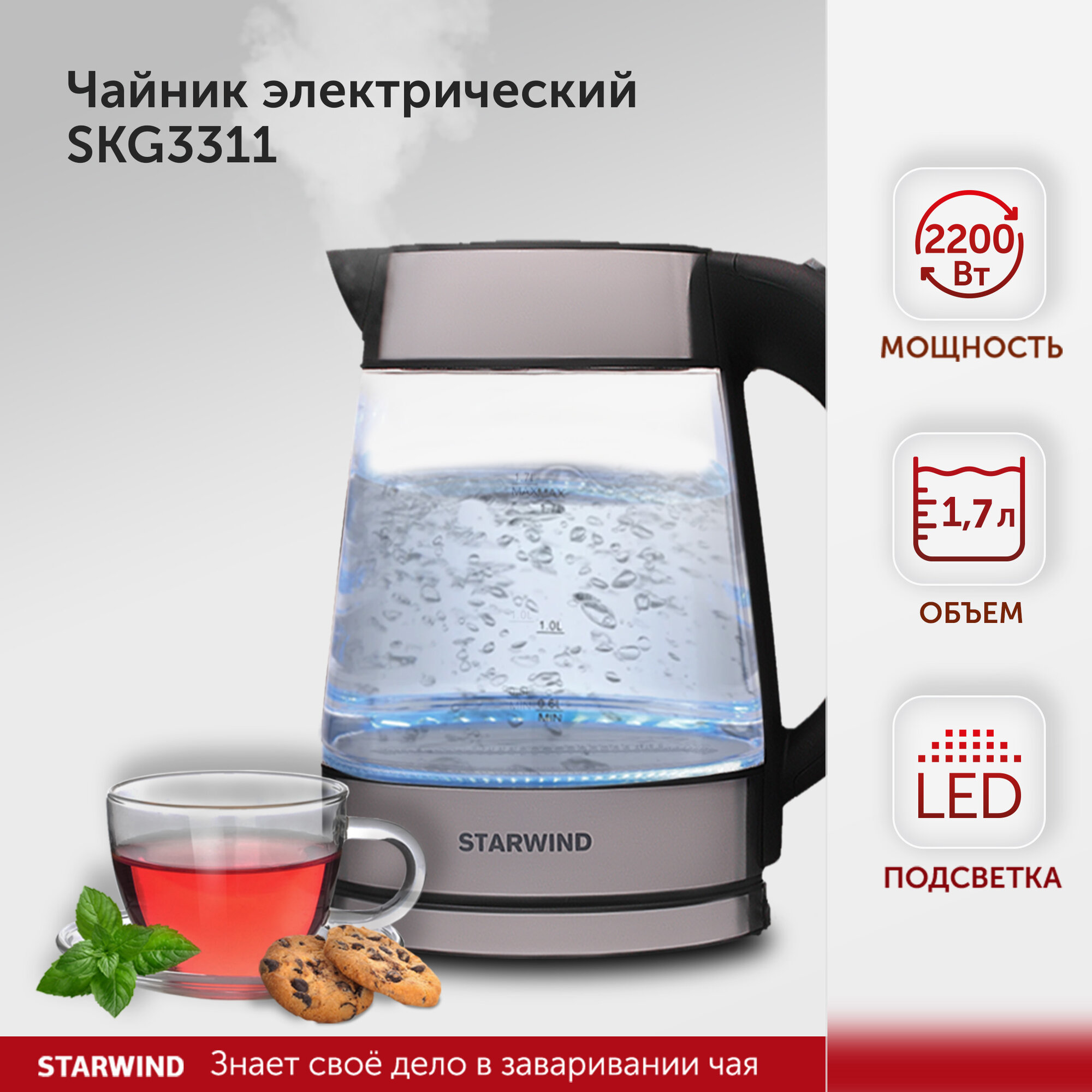 Чайник STARWIND SKG3311 черный/серебристый стекло/металл/пластик интересное: