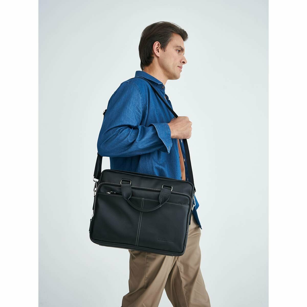 Кожаная деловая сумка для ноутбука Lakestone Glenroy Black