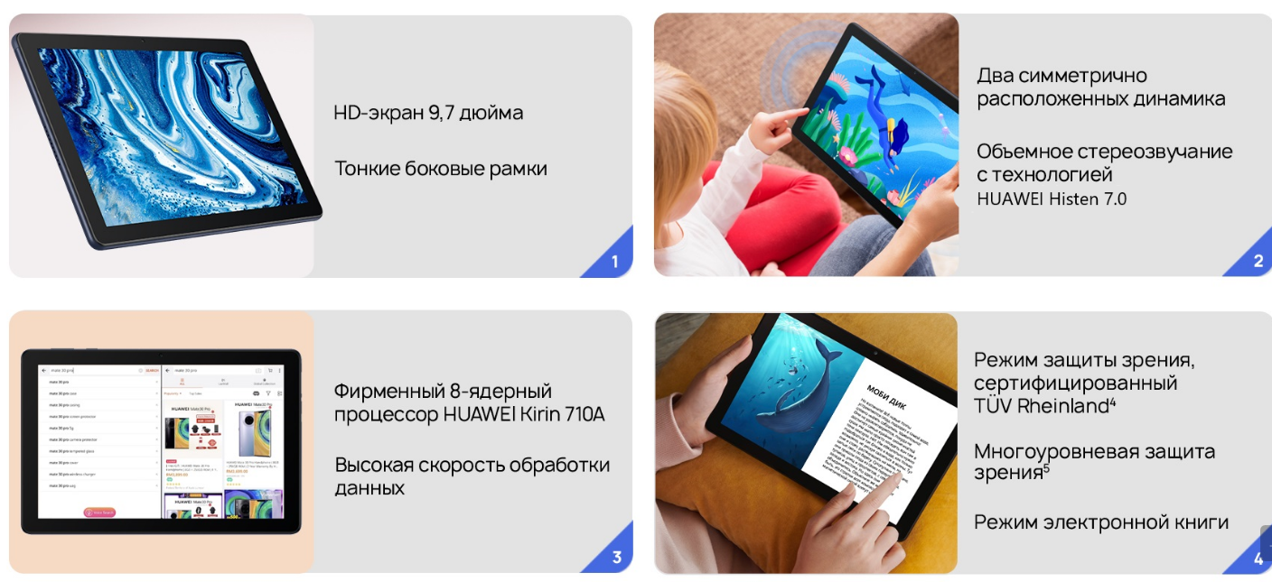 Ниже Вы можете прочитать отзывы на 9.7" Планшет HUAWEI MatePad T 10 (2020), RU, 2/32 ГБ, Wi-Fi, Android 10, насыщенный синий, ознакомится с подробными характеристиками, посмотреть интересные обзоры и фотографии на 9.7" Планшет HUAWEI MatePad T 10 (2020), RU, 2/32 ГБ, Wi-Fi, Android 10, насыщенный синий.