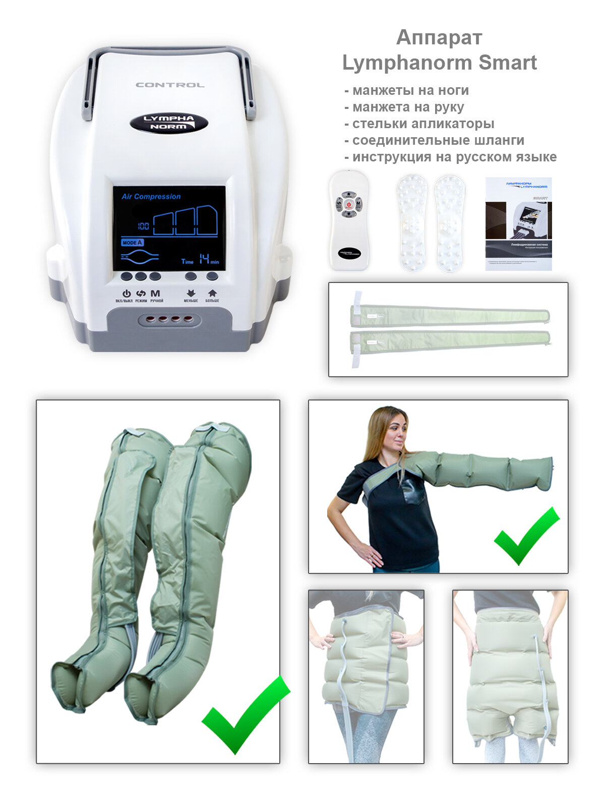Лимфодренажный массажер CONTROL LymphaNorm : 2 манжеты для ног L + 1 манжета-пояс XL + 1 манжета для руки. Профессиональный массажер для лимфодренажа и прессотерапии для дома