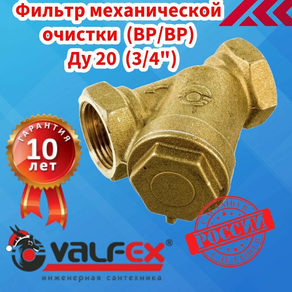 Сетчатый фильтр для воды VALFEX 3/4" ВР/ВР латунный, под пломбу 46Б5фт1 VF.192.L00.034.Bir