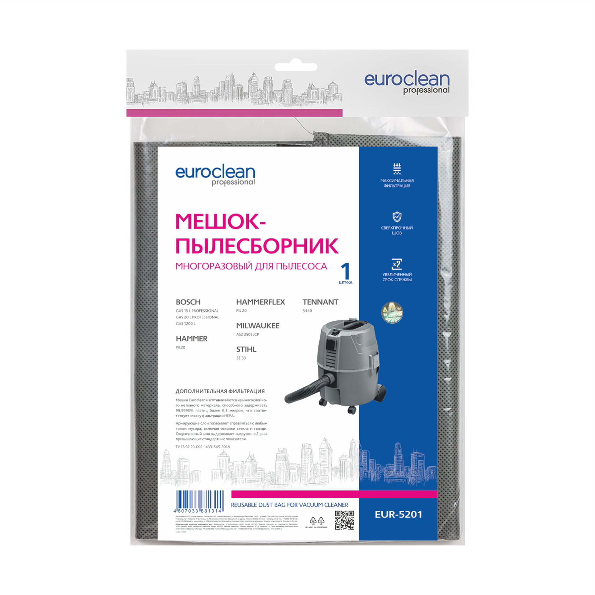 Многоразовый синтетический мешок EURO Clean EUR-5201