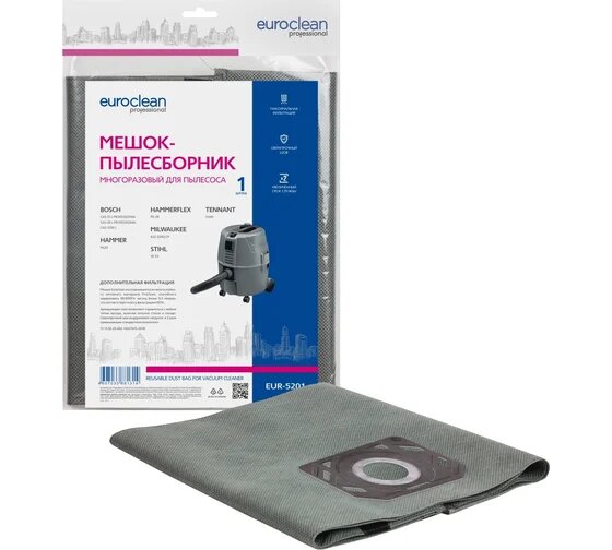 Мешок-пылесборник Euroclean многоразовый с текстильной застежкой для BOSCH, HAMMER, HAMMERFLEX и др.