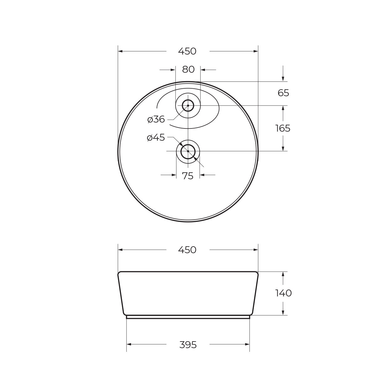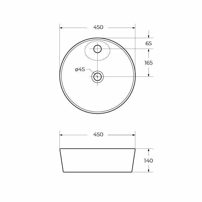 Раковина накладная BelBagno (450х450х140) круглая, с отверстием под смеситель, белая BB1306