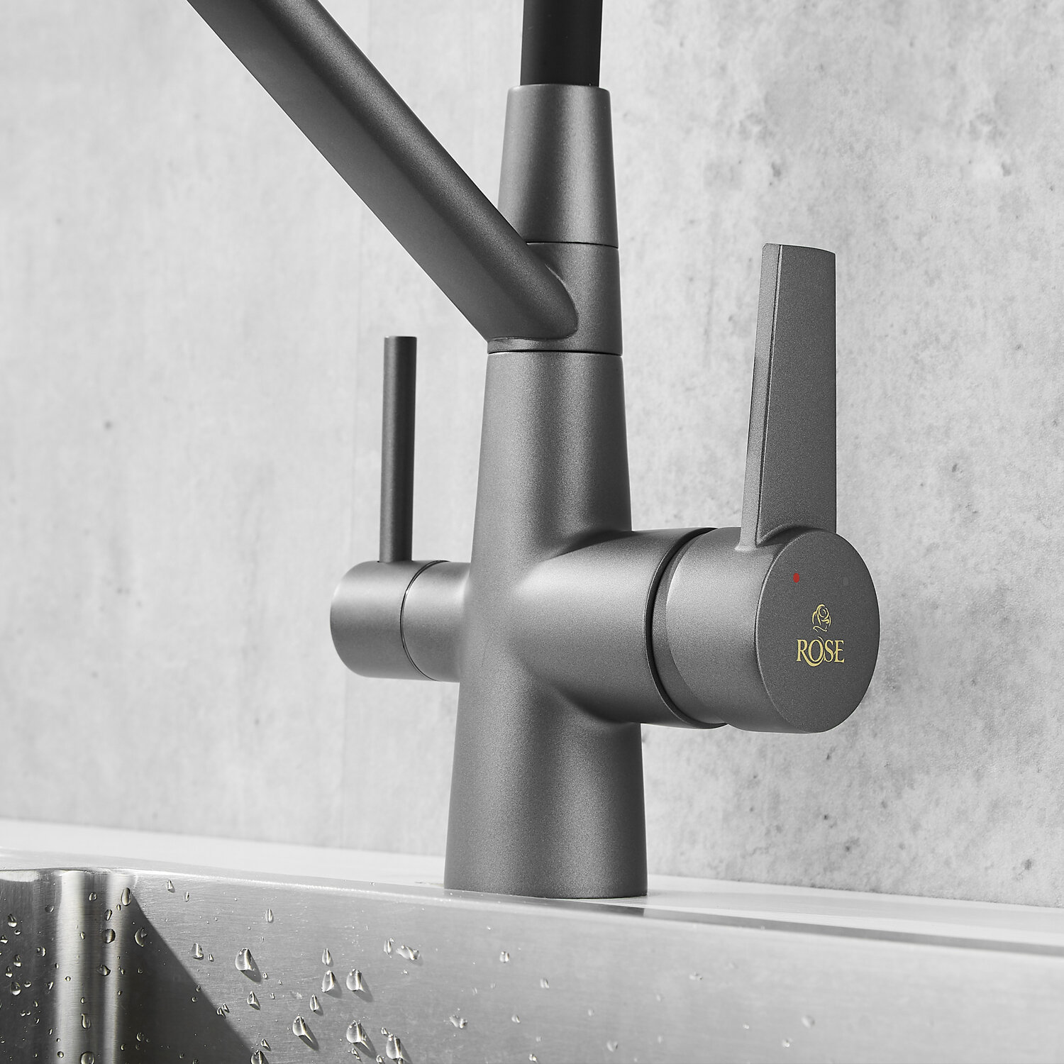 Смеситель для кухни с гибким изливом и фильтром для воды Rose R558Y,темно-серый