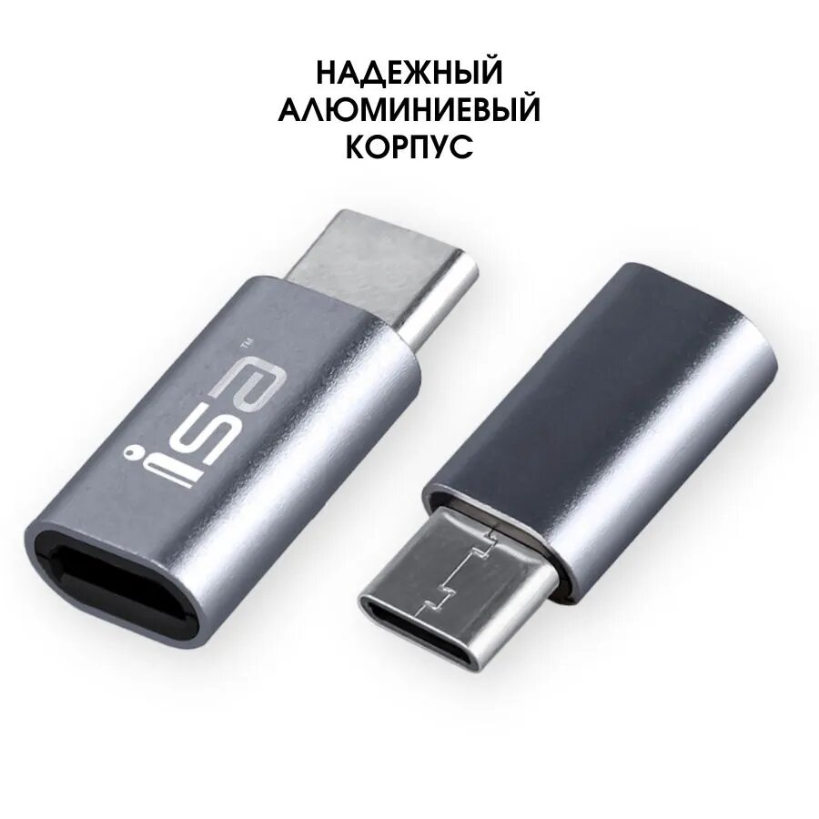 Переходник адаптер Type-C на Micro USB, ISA G-09, OTG, алюминий, серый