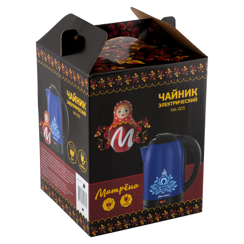 Чайник матрёна MA-005 электрический (2,0 л) стальной синий гжель