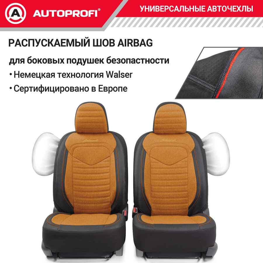 Универсальные чехлы на сиденья Linen Autoprofi, черно-оранжевые