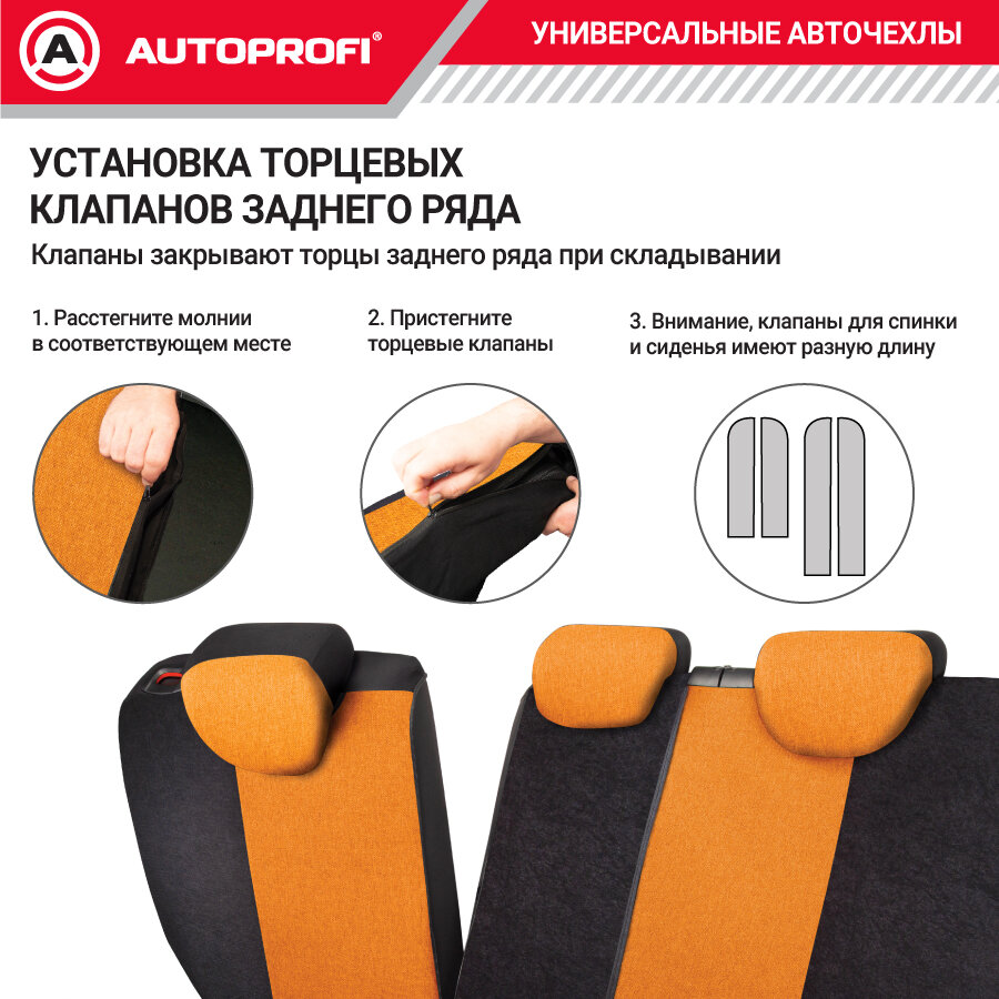 AUTOPROFI LIN-1505 BK/ORANGE Чехлы универсальные AUTOPROFI LINEN LIN-1505 BK/ORANGE лён чёрные/оранжевые