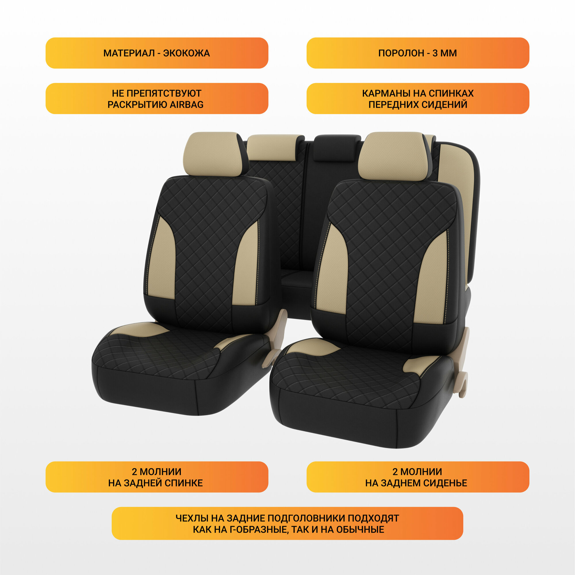 Чехлы King Next экокожа + терморомб черно-бежевые PSV PSV 131954 | цена за 1 шт
